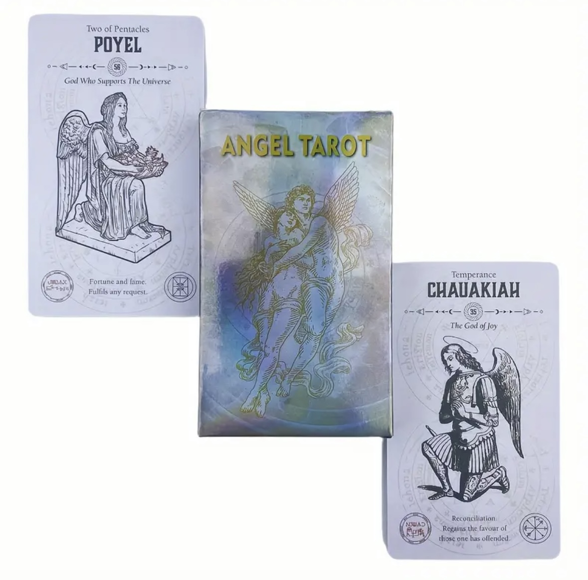 Cu o estetica delicata si ilustratii inspirate din traditia angelica, acest tarot aduce in prim-plan numele si energiile celor 72 de ingeri ai Kabbalei. Ideal pentru momente de reflectie, pentru cautarea raspunsurilor spirituale sau pentru conectarea cu protectorii invizibili care ne vegheaza. Este un instrument sacru care iti lumineaza inima cu intelepciune, speranta si protectie.